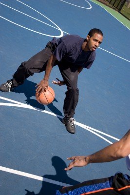 Just start dribbling, but keep your head up. Do not look down at the ball. In a game, you need to be looking up for open teammates and defenders. If you're looking down, you're going to lose the ball or get it stolen. Do everything you would do in a game: control the ball, dribble fast dribble slow, up and down the court, between your legs, behind your back, spin, stop and go.
